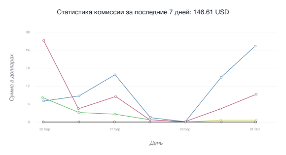 • График показывает общее число переходов всех рефералов по вашей партнерской ссылке и партнерским меткам за выбранный период времени.