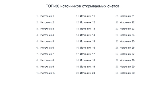 Топ-30 источников открываемых счетов