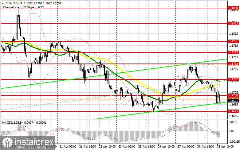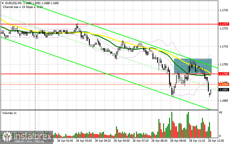 В своем утреннем прогнозе я обращал внимание на уровень 1.1700 и планировал от него принимать решения по входу в рынок. Давайте посмотрим на 5-минутный график и разберемся с тем, что там произошло. Прорыв и обратный тест 1.1700 привели к хорошей точке входа на продажу евро, что вылилось в небольшое снижение пары лишь на 12 пунктов. На вторую половину дня техническая картина была немного пересмотрена.