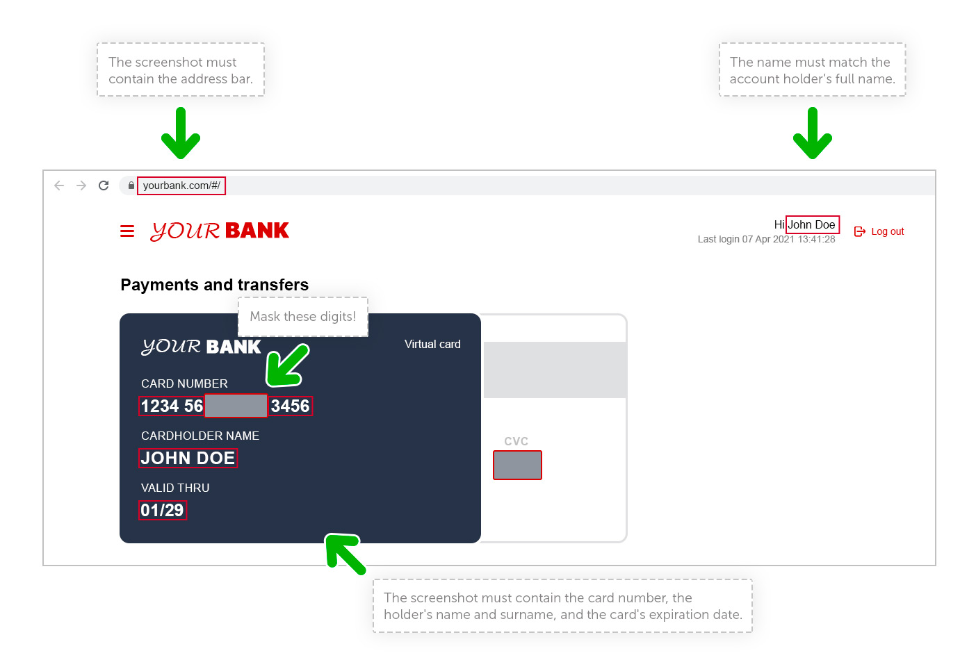 Vâng, bạn có thể gửi ký quỹ và rút tiền bằng thẻ trực tuyến. Đối với điều này, bạn cần xác minh thẻ trong phần Xác minh của Khu vực khách hàng. Ngoài ra, bạn có thể xác minh thẻ của mình thông qua ứng dụng di động InstaVerify dành cho Android. Để xác minh thẻ trực tuyến, bạn cần tải xuống ảnh chụp màn hình của thẻ phải hiển thị các dữ liệu sau: URL của trang ngân hàng trực tuyến, 6 chữ số đầu tiên và 4 chữ số cuối của thẻ ngân hàng, ngày hết hạn và tên của Chủ thẻ. Nếu thông tin này nằm trên các ảnh chụp khác nhau, bạn cần tải xuống tất cả chúng.